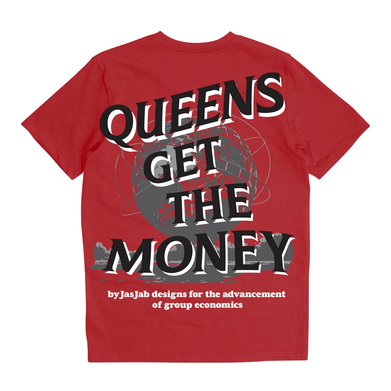 Queens Get the Money! QGTM design on the left chest. QGTM full color design on the back. The shirt is high quality 230 gsm heavyweight and oversized. The design is inspired by The World Fair hosted in Queens New York by the Iconic Unisphere in Flushing Park. A staple location for anyone who comes to visit Queens NY.